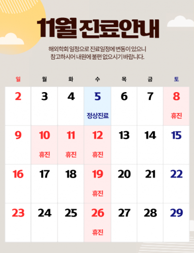 ※ 수 · 일요일 및 공휴일은 휴진합니다.
